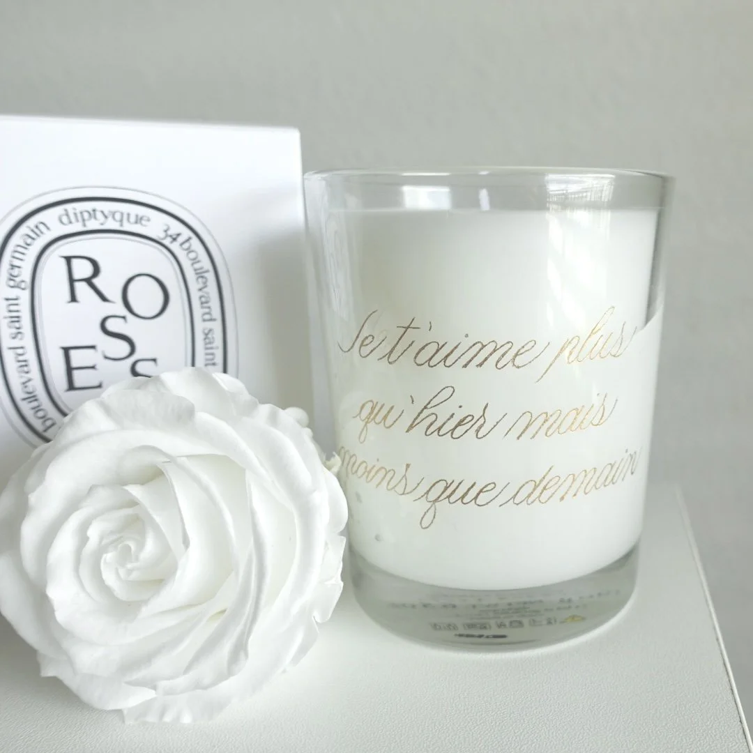 Engraving can be done on perfumes, candles, cosmetics, glassware, wine bottles and more. Items can be engraved with a name, initials, or a short message.